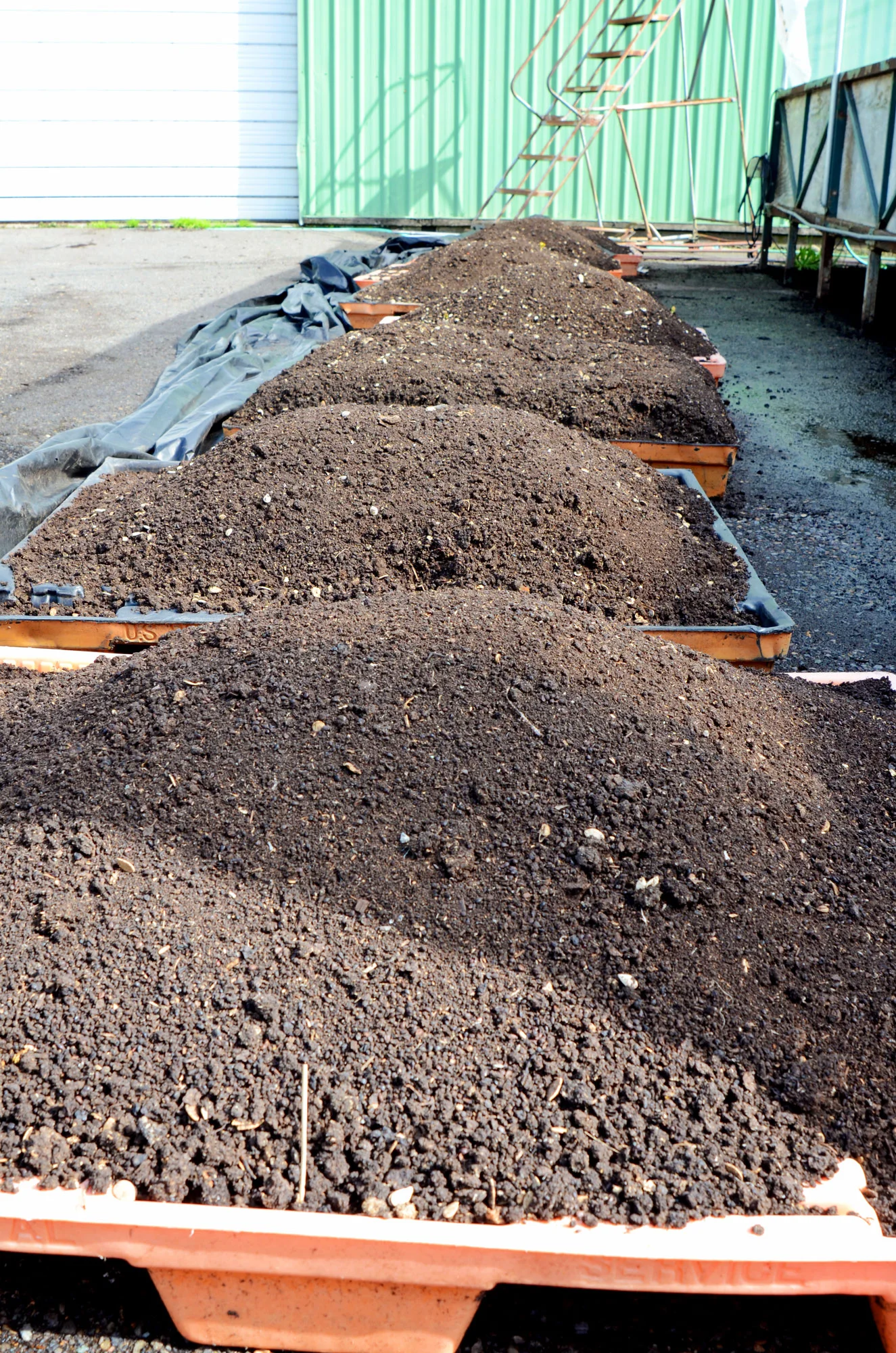 In truth I’m not sure how many red worms reside in our 5 foot by 32 foot flow-through worm bin, but from digging around in there, it seems like a million. The headline was written to call attention to just how vital our red wiggler worms (Eisenia fetida) are to building healthy soil at our farm, both in our fields and in our potting mixes.