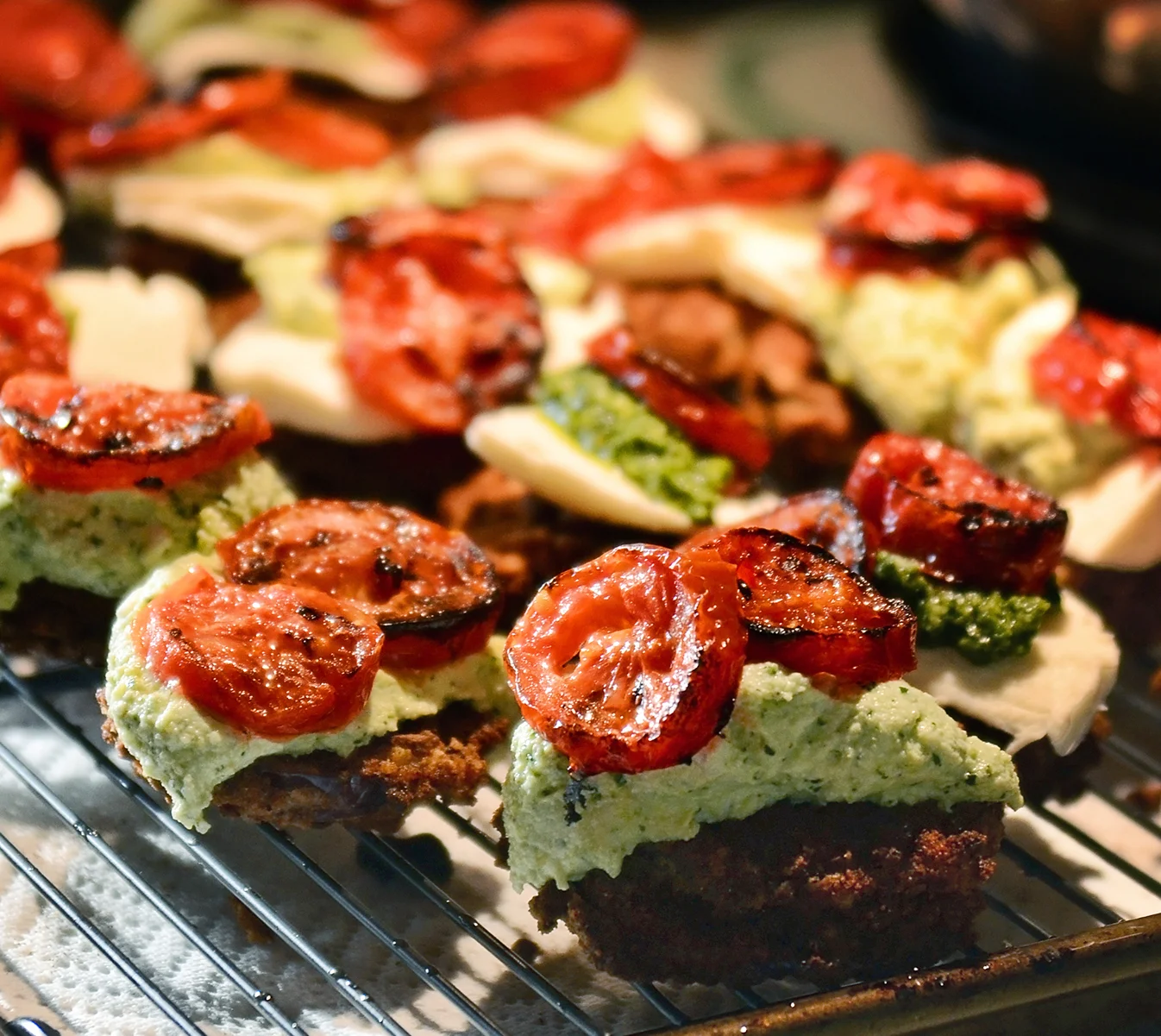 Broiled tomato slices (Slice tomatoes about ¼" thick. Arrange on a baking sheet. Drizzle with olive oil and sprinkle with salt. Broil until just charred)