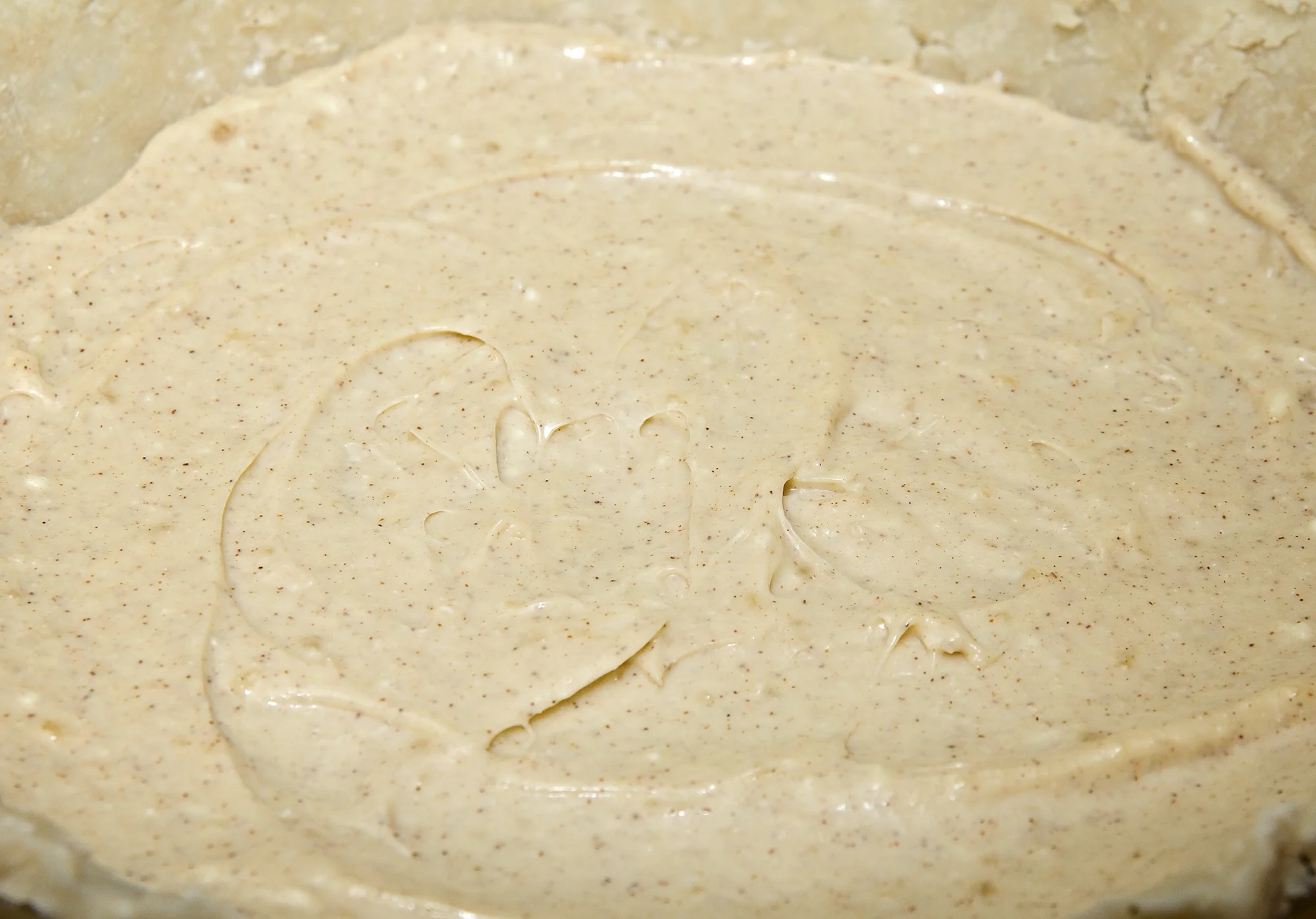 Pour and spread onto crust then return crust to the refrigerator.