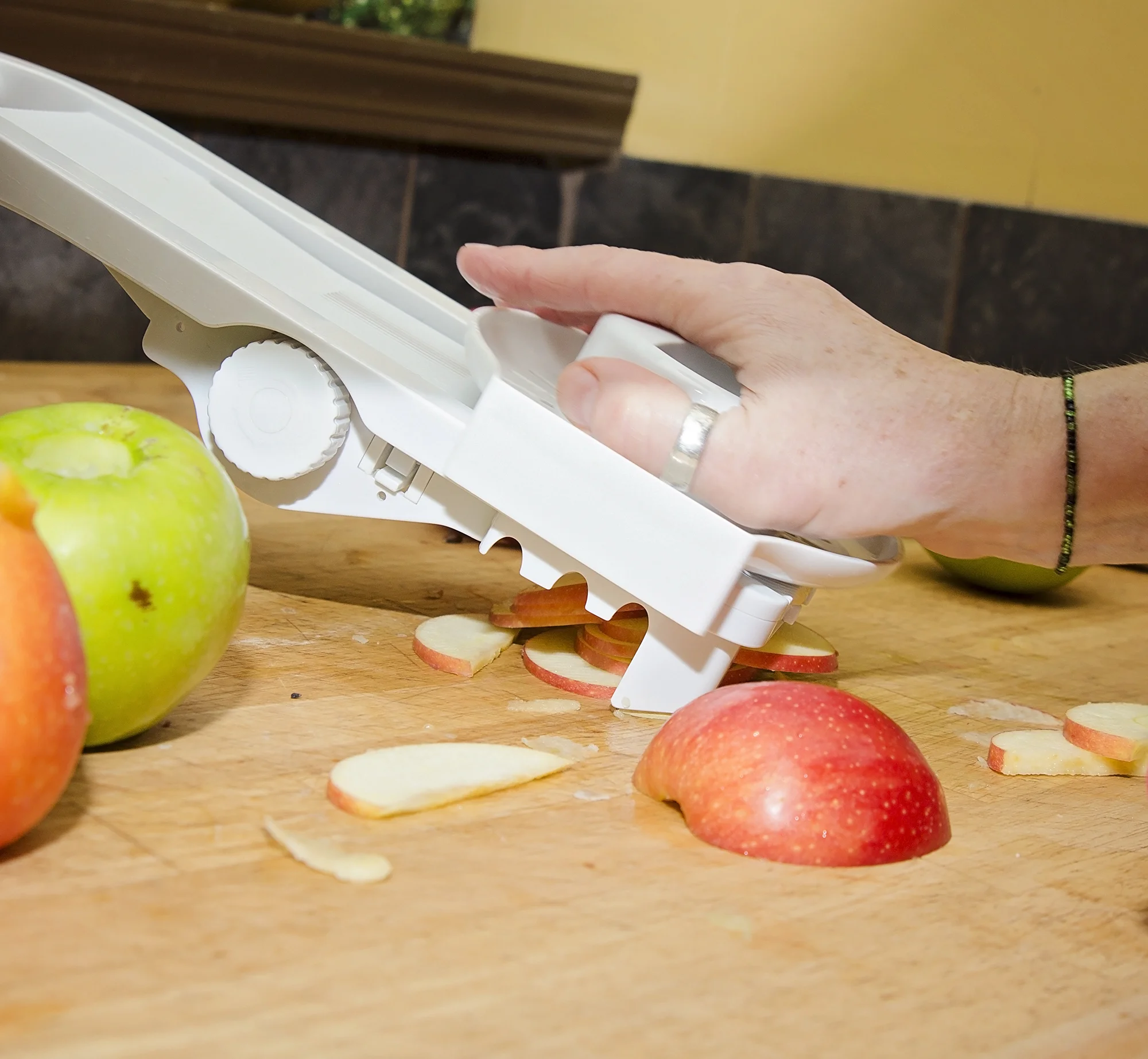 Cut apples in half, core and slice into 1/8 inch slices.