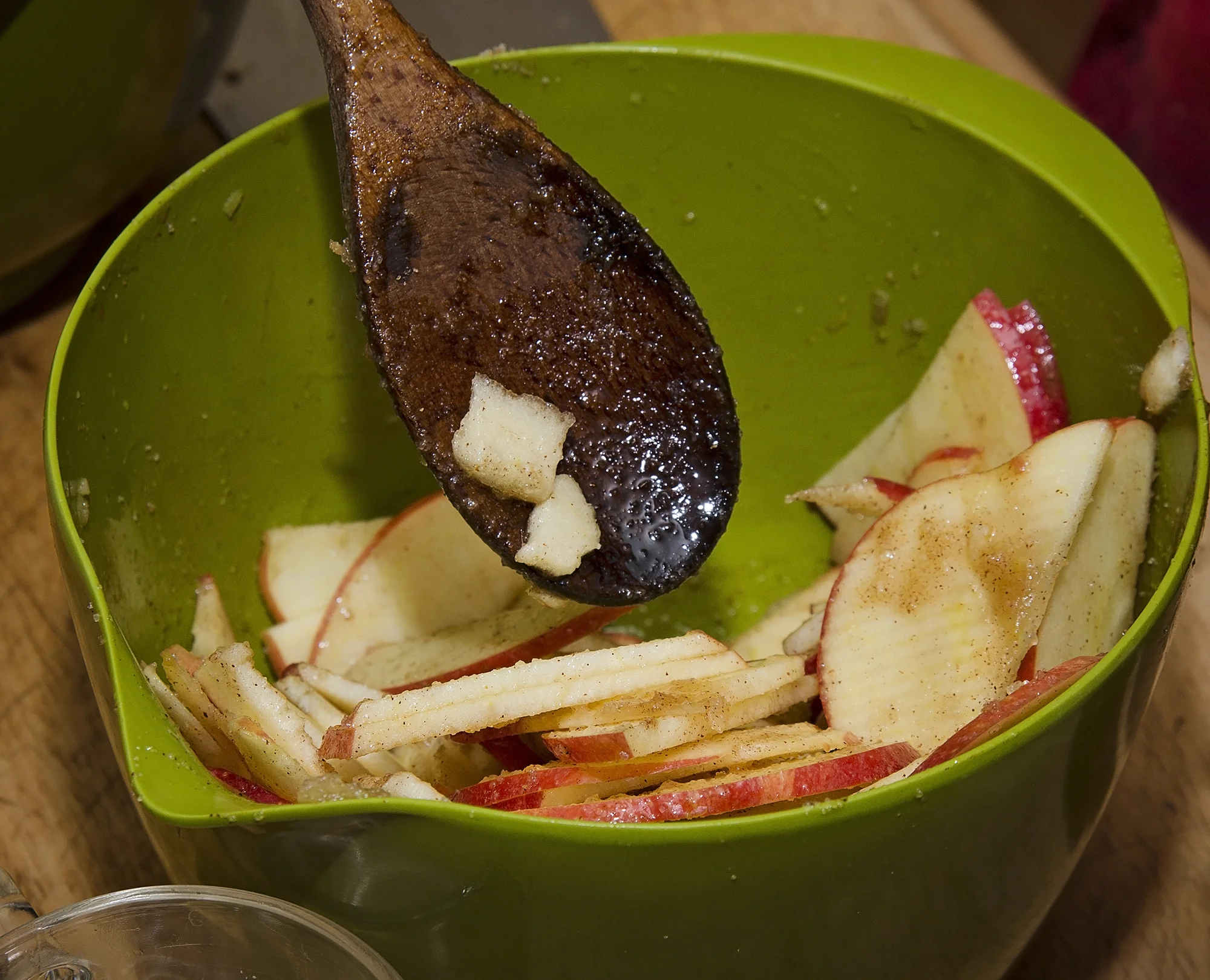 Pour any remaining sugar/lemon/spice mixture over pie.